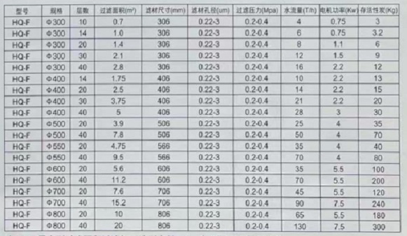 不锈钢层叠式精密过滤机(器)规格与技术参数: